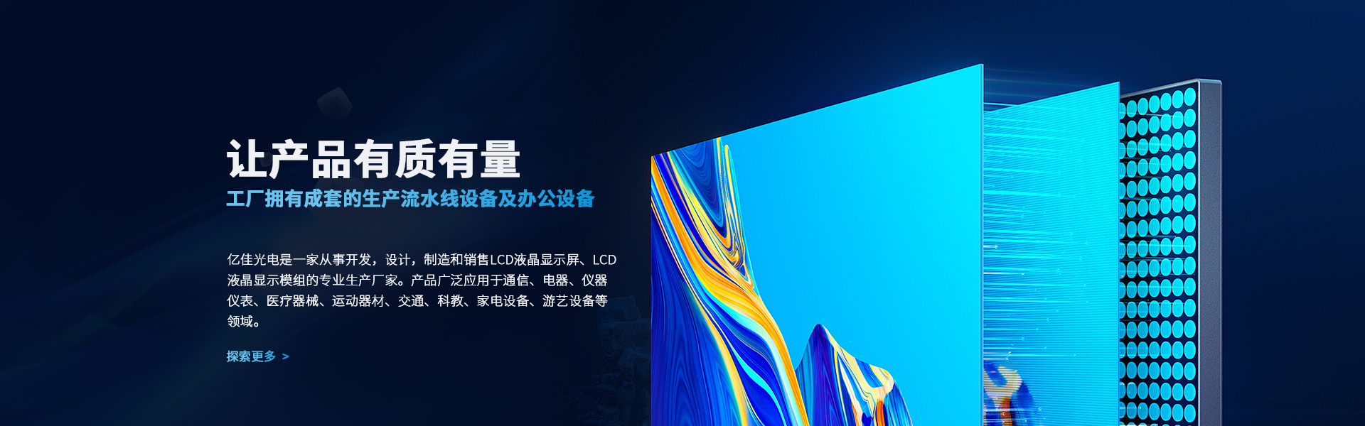 億佳光電是一家從事開發,設計,制造和銷售LCD液晶顯示屏、LCD液晶顯示模組的專業生產廠家。產品廣泛應用于通信、電器、儀器儀表、醫療器械、運動器材、交通、科教、家電設備、游藝設備等領域。